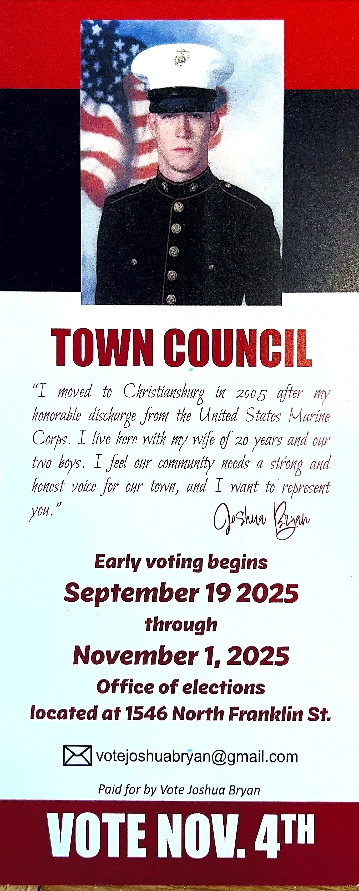 I humbly ask for your vote on November 4th.”
