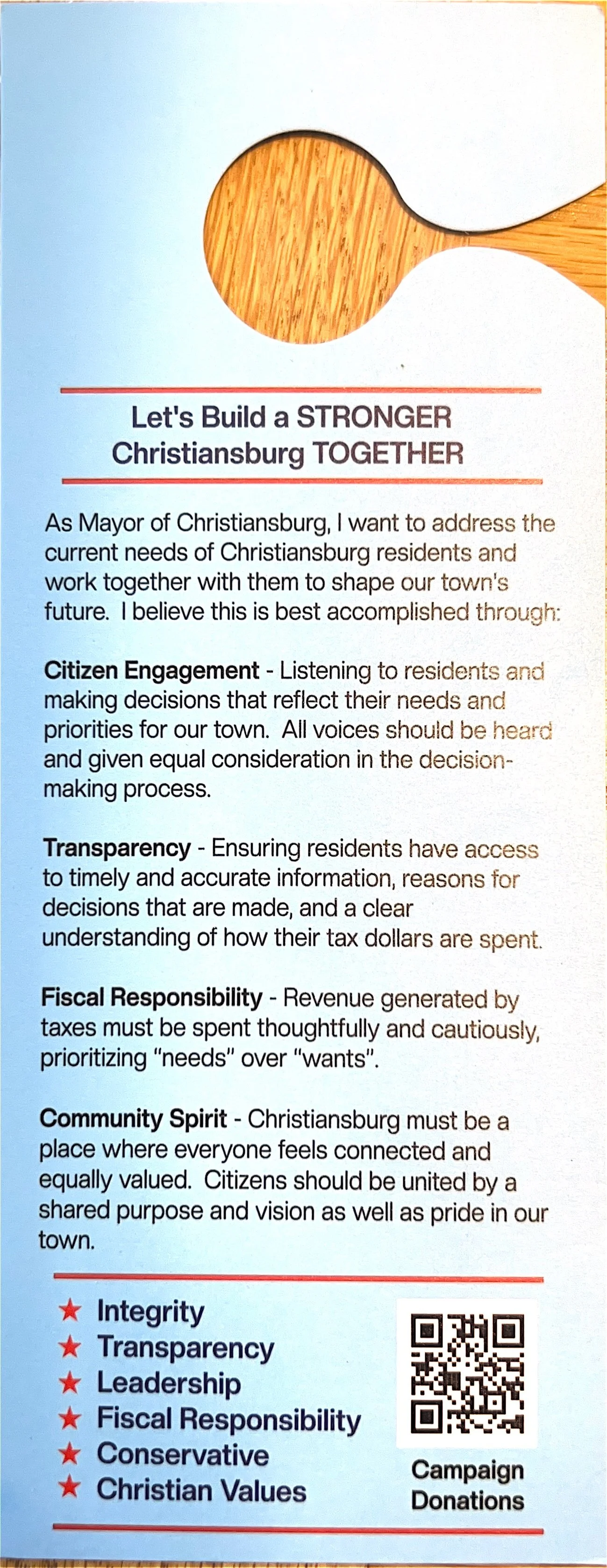 I feel our community needs a strong and honest voice for our town, and I want to represent you."
